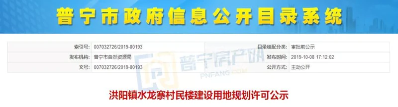 洪阳镇水龙寨村民楼建设用地规划许可公示