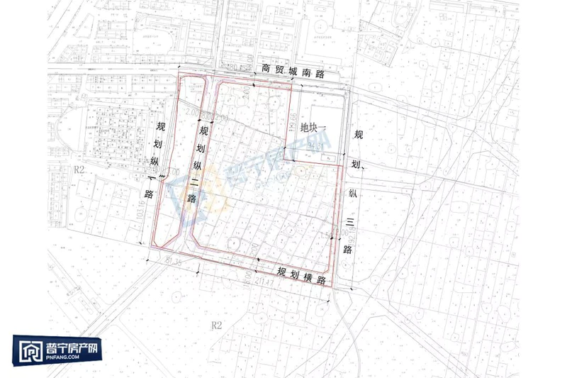 4.图中标注尺寸单位为米;红点划线为用地范围线,红实线为多层建筑物控制线,高层建筑物应按有关规定要求再进行退缩;