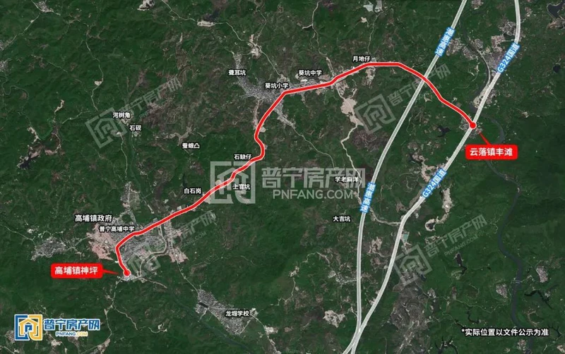 该项目起点位于云落镇丰滩,终点止于高埔镇神坪,全长8.757公里,工程总投资8092万元。至目前,市财政每公里补助200万的补助资金已拨付到位,工程已完成投资5800多万元,基本按设计完成了高埔镇辖区路面硬底化及相关配套设施建设;云落段(高埔镇葵坑村至云落镇崩坎村国道324线交界处)已完成征地拆迁、国防光缆迁移、路基平整等工作,目前正在抓紧实施路面硬底化及道路绿化等工程,总工程预计于2019年8月份全面完成建设。