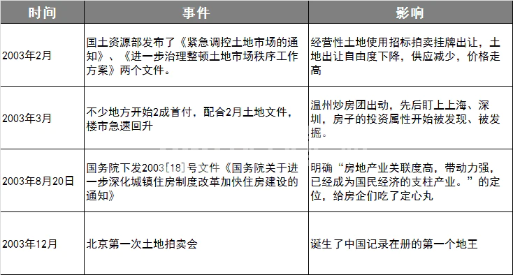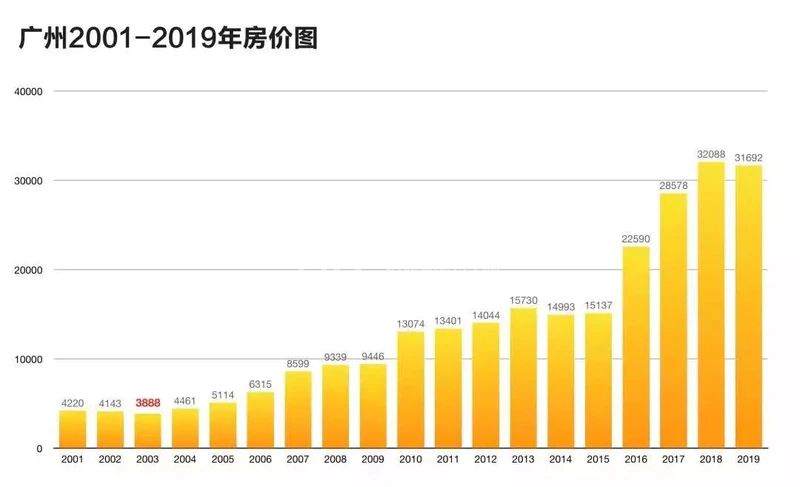 2003年8月,国务院下发了《国务院关于促进房地产市场持续健康发展的通知》。文件第一条就是:“房地产业关联度高,带动力强,已经成为国民经济的支柱产业”。同年,国土资源部发布了《紧急调控土地市场的通知》、《进一步治理整顿土地市场秩序工作方案》两个文件。开始限制土地供应。而这一系列操作,让短暂低迷的楼市从此走向一路高歌的道路。也就是这年,温州炒房团出现了,中国人第一次感受到原来买房也能赚钱!2003年9月23日,上海《东方早报》刊文《温州千亿民资全国炒楼》,称“10万温州人在全国各地炒楼,动用民间资本约1000亿元。也就是那一年,中国住宅投资历史上首次突破万亿大关。而从2003年到2019年,虽然楼市调控政策也随即而来,但无法否认的是,中国楼市跨越了23倍的飞跃!广州楼市也从4000元的单价升到30000元的单价,涨幅715% !