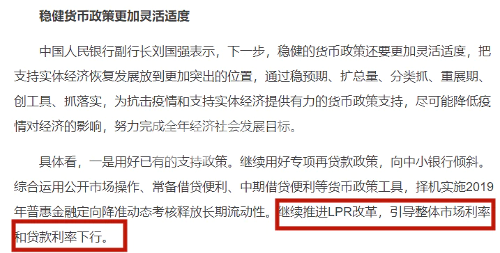 就在27号,央行副行长刘国强表示,下一步将继续推进贷款市场报价利率(LPR)改革,引导整体市场利率和贷款利率下行。