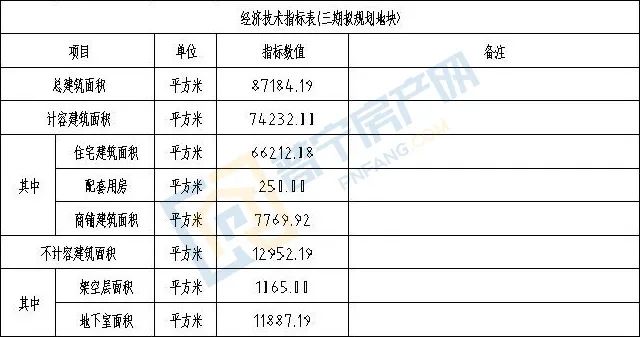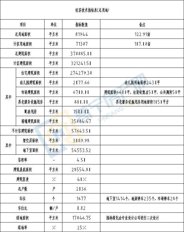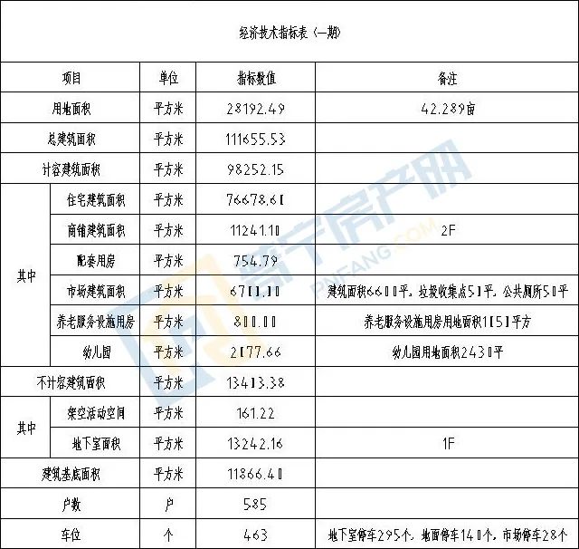 4. 用地面积:81944平方米(122.916亩)5. 建设规模(一期):7幢17层住宅楼(商业裙楼二层)、1幢3层幼儿园、1幢3层市场、1幢2层养老服务设施用房、1层地下室,总建筑面积111655. 53平方米(其中地上98413. 37平方米,地下13242. 16平方米)。