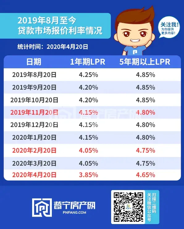 1年期LPR为3.85%,较上期下调20个基点,5年期以上LPR为4.65%,较上期下调10个基点。以上LPR在下一次发布LPR之前有效。