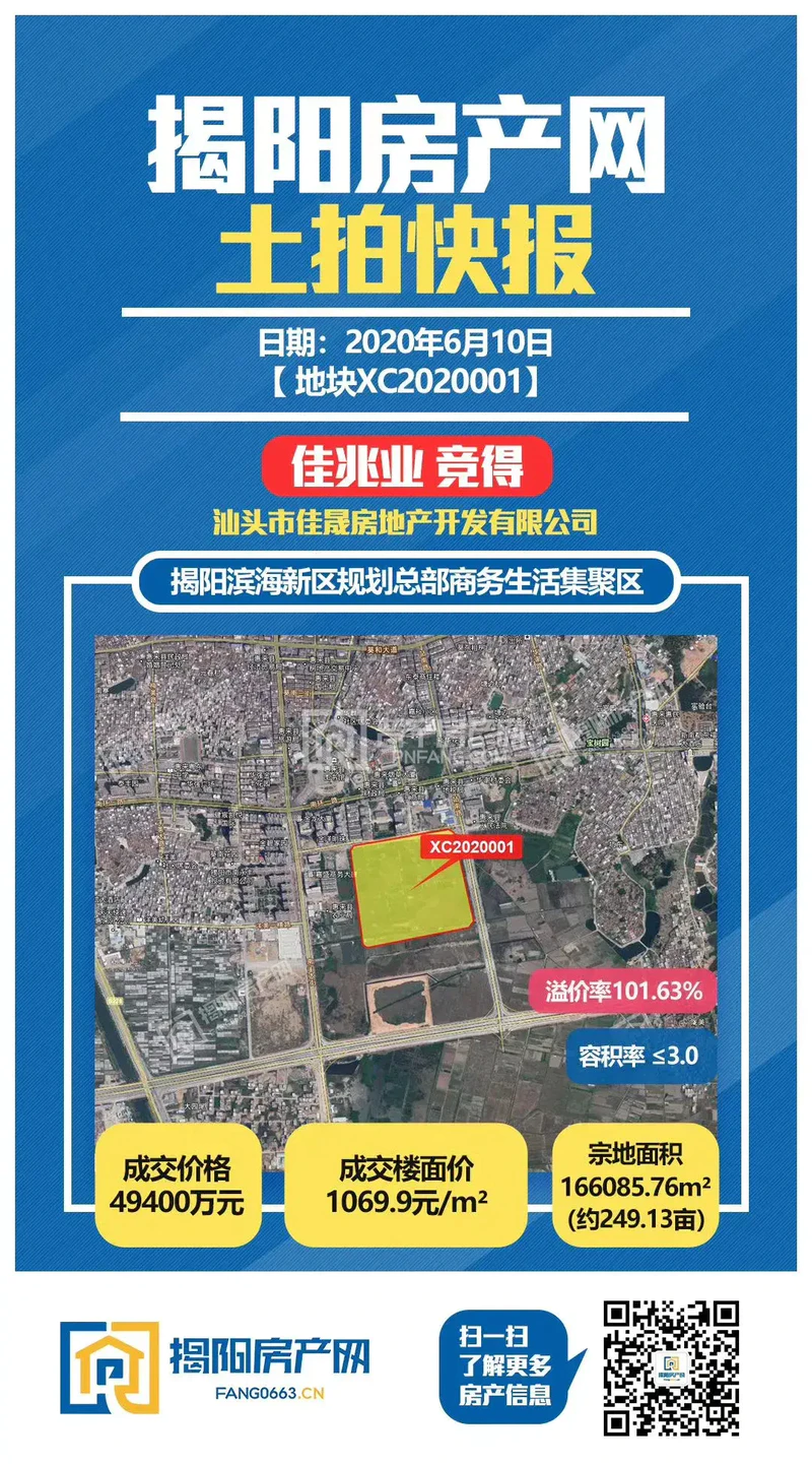 今天下午,备受瞩目的粤东新城首宗土拍(宗地编号:XC2020001)摇号结果出炉了!该地块最终被汕头市佳晟房地产开发有限公司以4.94亿元拿下。据小房君了解,汕头市佳晟房地产开发有限公司背后大股东就是佳兆业集团控股有限公司。接下来一起了解下该地块的土拍成交情况。