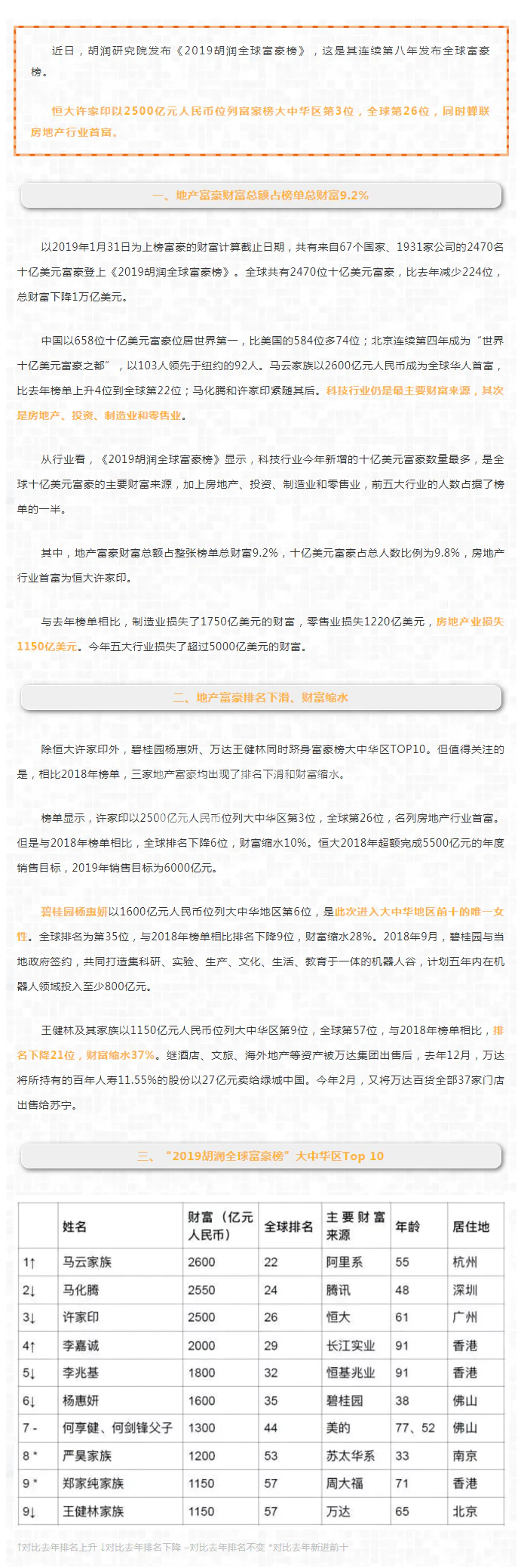 2019胡润全球富豪榜发布,恒大蝉联房地产首富!