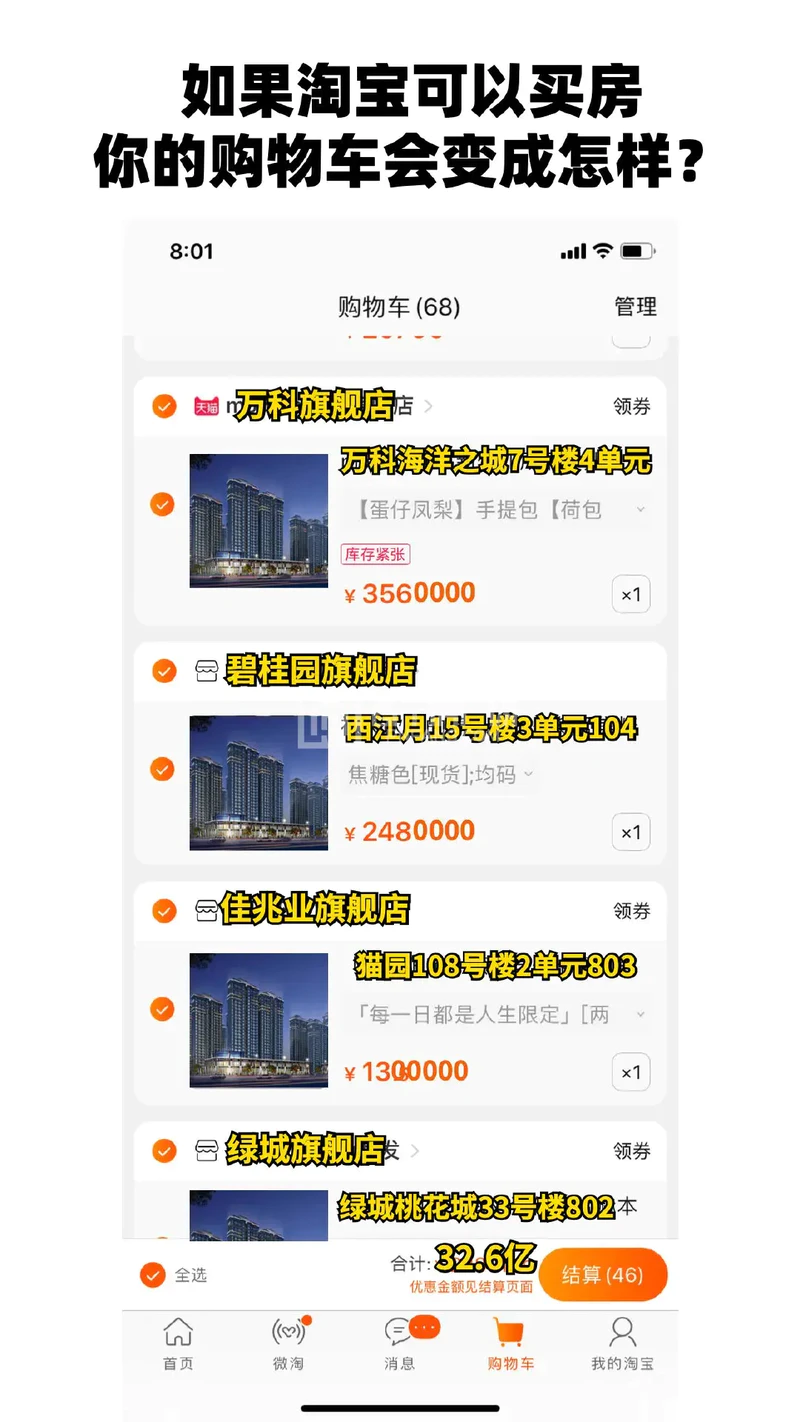 据介绍,天猫好房将帮助房地产企业定制线上房产旗舰店,把3D购技术、直播、更多金融服务能力与房产行业结合,打通线上看房、购房的全链路。 比如,天猫计划通过3D购技术,把房子的窗外景观、噪音光照等等真实数据形象地展示出来,让线上看房的体验更真实。 而在未来,房企的天猫旗舰店将成为线上的“智能售楼处”,购房者只要打开淘宝APP,就能足不出户地看房、挑房,买房将会像网购一样省心省力省钱。 天猫好房还承诺,在未来至少3年内不赚钱,而且所有收入100%都会补贴给购房者。