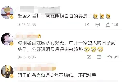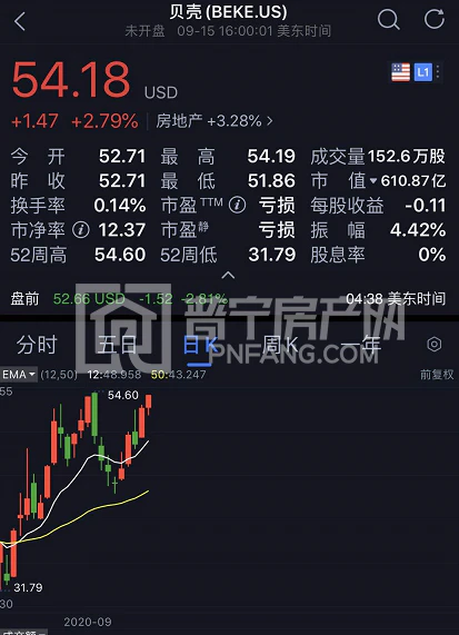 有网友表示,希望能像支付宝改变银行一样,来推动房地产业的变革。 而刚刚踏上美股的贝壳,在资本市场势头迅猛。上市仅一周,贝壳总市值达472.08亿美元(3265.8亿元人民币),超过地产龙头股万科A,百度也被其甩在身后。 截至最新数据,贝壳股价达54.18美元,市值高达4130亿人民币,不过在天猫宣布进军房产中介之后,盘前股价跌超2%!