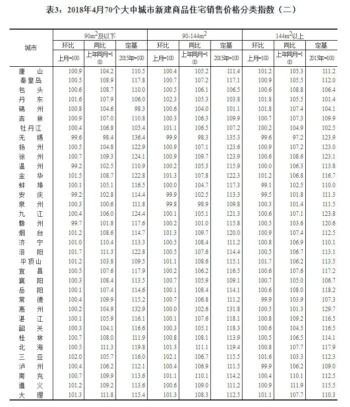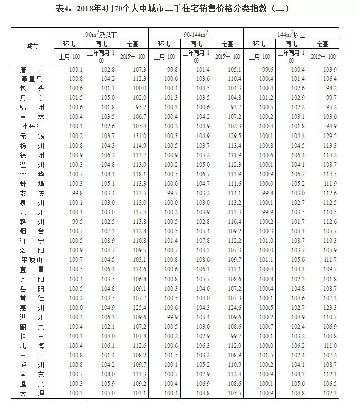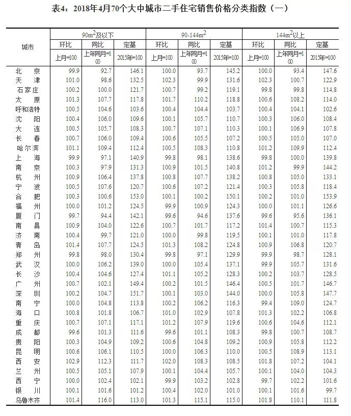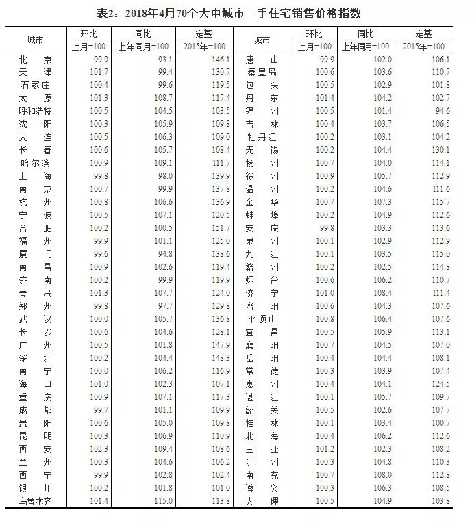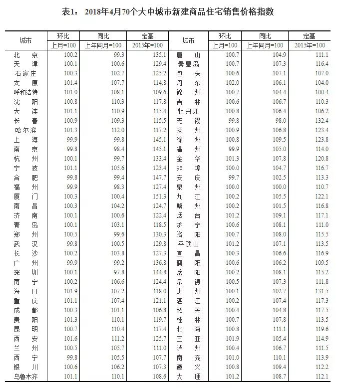 国家统计局今日发布了2018年4月份70个大中城市商品住宅销售价格变动情况统计数据。