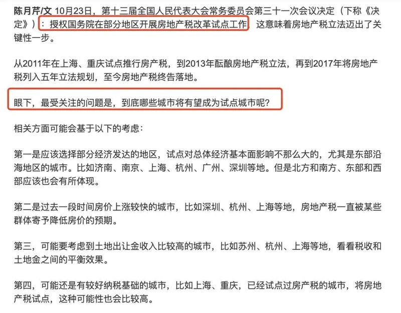 房地产税,一直是压在大家心里的石头,到底会不会出,什么时候出,怎么出,包括哪些城市……