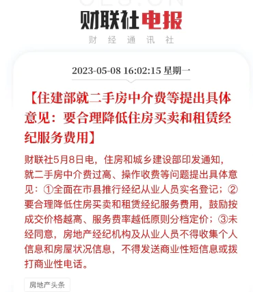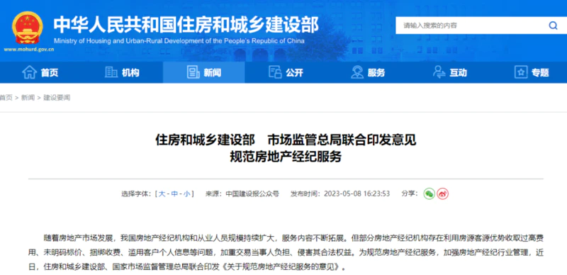 5月8日,住房和城乡建设部、市场监管总局发布《关于规范房地产经纪服务的意见》,要全面推行经纪从业人员实名登记,鼓励按照成交价格越高、服务费率越低的原则实行分档定价,房地产经纪机构及从业人员不得非法收集、使用、加工、传输他人个人信息,不得非法买卖、提供或者公开他人个人信息。