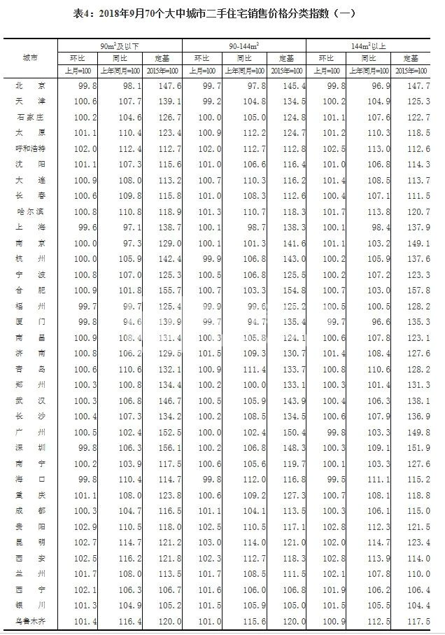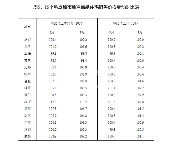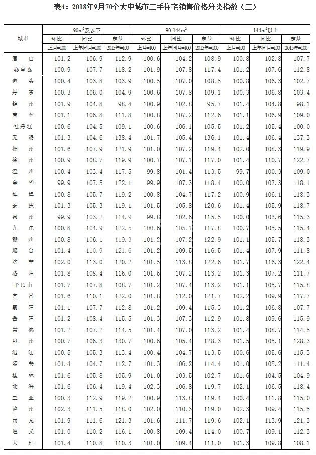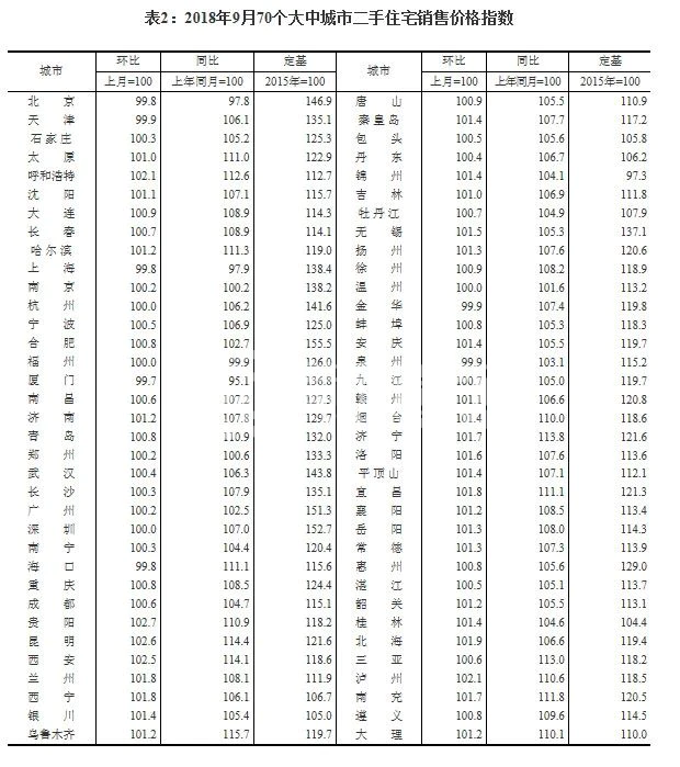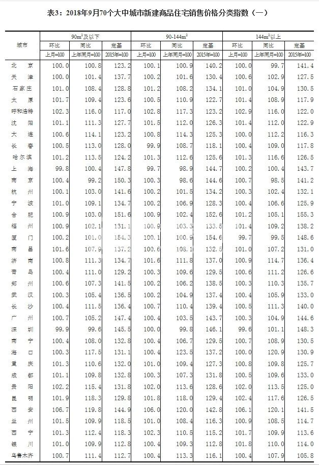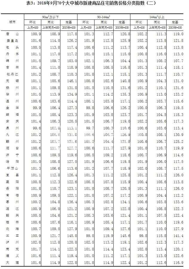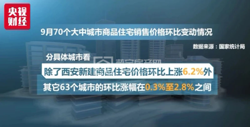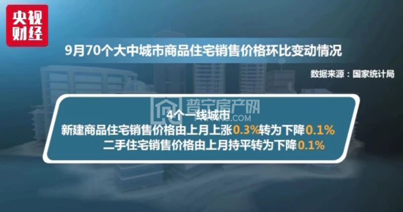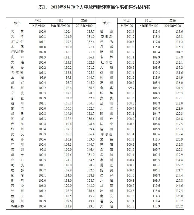 国家统计局今天发布的9月份70个大中城市商品住宅销售价格显示: