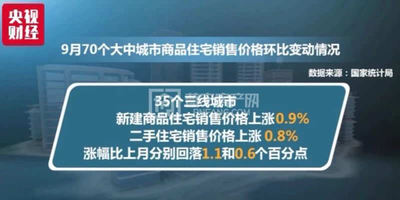 35个三线城市新建商品住宅和二手住宅销售价格分别上涨0.9%和0.8%,涨幅比上月分别回落1.1和0.6个百分点。