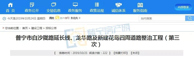 近日,揭阳市公共资源交易中心对普宁市白沙陇路延长线、龙华路及新建花岛四周道路整治工程进行公开招标。