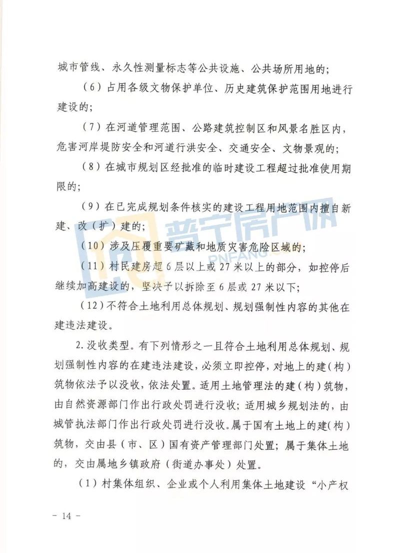 1. 村民建房(包括自建房和联建房):村集体经济组织成员利用村集体土地建设6层(含6层)以下,高度27米以下建自住房屋。处置方式: