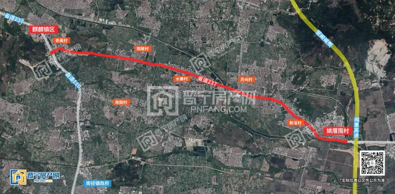 今年1月13日,揭惠高速公路麒麟站出入口正式开通,有效缓解普宁市境内交通压力,因与省道S237连通,是附近乡镇上下高速的重要出入口。随着揭惠高速公路的建成,省道237的改建工程同样迫在眉睫。
