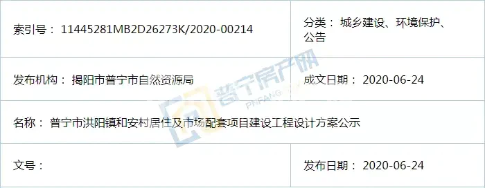 普宁洪阳镇和安村居住及市场配套项目建设工程设计方案公示