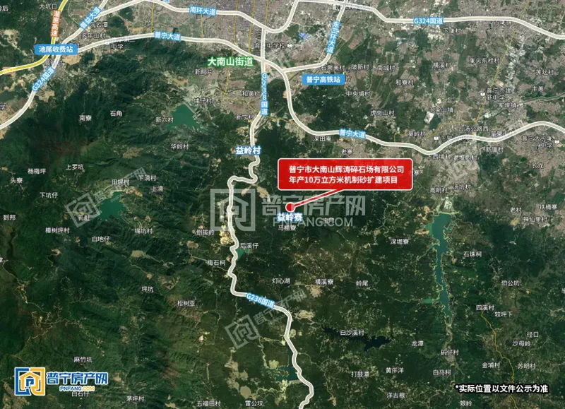 普宁市大南山辉涛碎石场有限公司年产10万立方米机制砂扩建项目,位于揭阳市普宁市大南山街道益岭村尖仔山,总投资300万元,由普宁市大南山辉涛碎石场有限公司建设,项目在原矿区内新增年生产量为10万吨的机制砂生产线,主要新增颚破机、圆锥机、振动筛等设备。新增生产线的占地面积约1000平方米。根据《普宁市人民政府办公室关于印发普宁市规范石场开采保障建筑石料供应工作方案的通知》(普府办【2020】4号)(附件7)的相关规定:由相关部门提出支持现有采石场提升产能的有效措施,从大局出发,依法依规、主动作为,协调矿山企业开展提升产能改造,对产采石场,要摸清废料和积货,区分类别存量,加以资源再利用,推广机制砂的生产销售和使用,多渠道解决工程项目建筑材料供应的问题。同时为满足市场对机制砂的需求,普宁市大南山辉涛碎石场有限公司拟在矿区内采矿用地,建设年产10万立方米机制砂扩建项目,项目原材料为采用矿区生产过程中产生的碎石。项目计划2020年6月开始施工,施工期3个月,2020年9月开始生产。