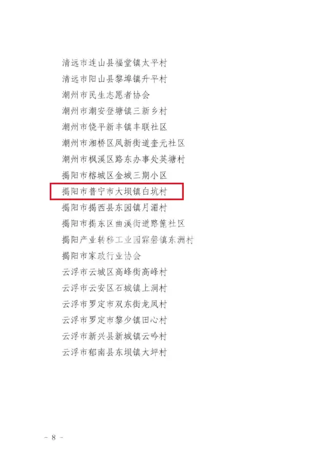 近年来,普宁市大坝镇白坑村深入贯彻习近平总书记“注重家庭、注重家教、注重家风”的重要指示精神,狠抓精神文明建设,社会风气健康向上,家庭文明建设取得较好成效。