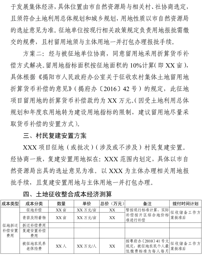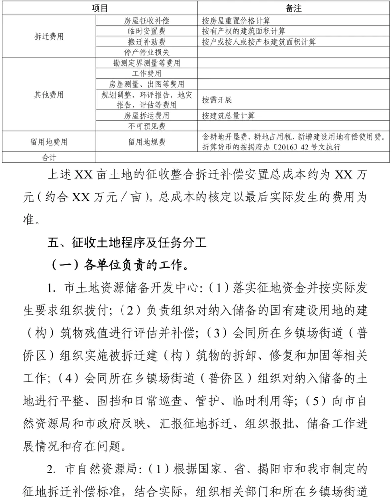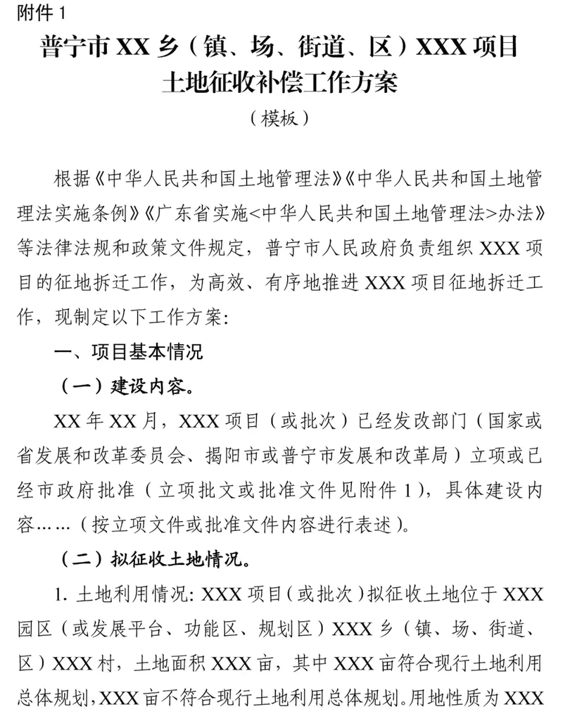 附件:1.普宁市XX乡(镇、场、街道、区)XXX项目土地征收补偿工作方案(模板)