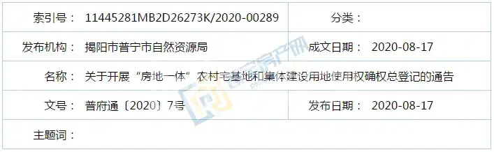 近日,普宁市自然资源局发布了《关于开展“房地一体”农村宅基地和集体建设用地使用权确权总登记的通告》。