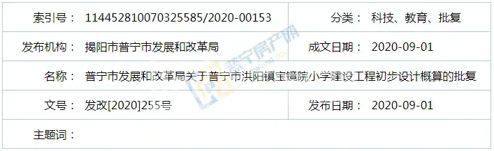 近日,普宁市有关部门批复了普宁市洪阳镇宝镜院小学建设工程初步设计概算,原则同意该建设工程项目初步设计概算书。