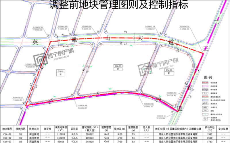本次调整主要针对三个地块的建筑密度及C14-03地块交通优化进行调整,具体如下: