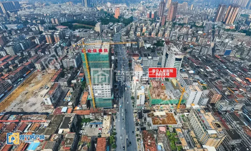 从航拍图可以看到,流沙卫生院已建至7层,工人们正在加紧施工中,相信再过不久项目将迎来封顶。 实拍图片 ···· 据了解,普宁市原流沙镇卫生院建于1978年,由于建立已久,楼房破旧不堪,墙体破损,钢筋外露,存在安全隐患,且业务用房严重不足,服务设施和服务能力不能满足人民群众的医疗需要。 △原普宁市流沙东街道卫生院(普宁市精神病医院) 因此,普宁市原流沙镇卫生院拟重建综合楼,工程总投资14013563.8元,建设地下1层,地上8层,总建筑面积6601平方米,预计2021年4月竣工。 ···· 建设前 建设中 建成后 普宁市人民医院内科大楼 普宁市人民医院内科大楼建设项目,将建设一幢25层内科大楼(附楼6层)、地下室2层,总建筑面积52093.74平方米(约78亩),其中地上40981.3平方米,地下11112.44平方米。 新妇幼保健院综合大楼 ▲效果图