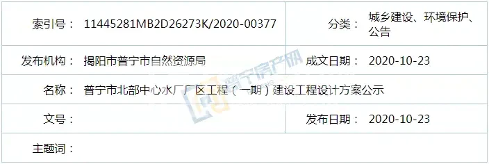 近日,普宁市自然资源局发布了普宁市北部中心水厂厂区工程(一期)建设工程设计方案公示,具体内容如下: