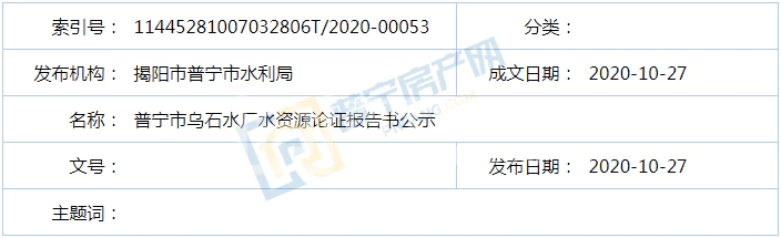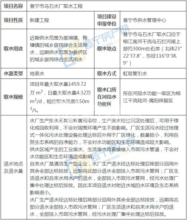 近日,《普宁市乌石(楼盘详情户型图相册地图)水厂水资源论证报告书》已通过普宁市水利局组织的专家评审。为体现公开、公正的原则,强化公众参与,现将报告书有关内容予以公示。