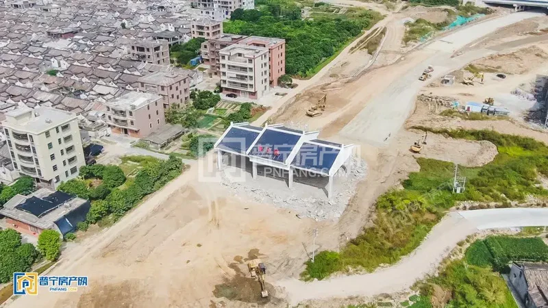 从航拍图可以看到,“普宁东”三个大字已安装完成,收费站的外观已呈现在眼前,其它工程正在有序建设中,希望施工方能加快施工进度,确保今年年底建成通车。