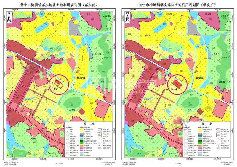01 关于《揭阳市普宁市预留城乡建设用地规模使用审批表(梅塘镇污水处理厂等4个项目)》成果的公告 一、预留城乡建设用地规模使用审批表编制原因 根据《广东省自然资源厅关于全力统筹推进疫情防控和经济社会发展加强自然资源保障服务的通知》(粤自然资发〔2020〕6号),广东省对各地级以上市分别预下达新一轮国土空间规划5000亩城乡建设用地规模,该预下达规模参照预留城乡建设用地规模使用,优先保障重要民生和脱贫攻坚项目。根据揭阳市自然资源局《关于进一步明确省预下达我市新一轮国土空间规划城乡建设用地规模使用有关事项的通知》(揭市自然资通〔2020〕78号)要求,本次预留规模用于保障近期具备建设条件、急需落位建设的项目,优先保障重要的各类民生、市政、交通等设施和重要产业项目,梅塘镇污水处理厂等4个项目属于近期具备建设条件、急需落位建设的民生类基础设施项目,符合预留城乡建设用地规模使用条件。根据有关文件规定,我局按相关要求组织编制了《揭阳市普宁市预留城乡建设用地规模使用审批表(梅塘镇污水处理厂等4个项目)》(以下简称《审批表》)。 二、土地利用总体规划主要土地调控指标变化情况 《审批表》落实地块总面积3.8248公顷,落实前,落实地块土地利用规划地类为农用地3.6090公顷(其中耕地3.3640公顷,园地0.1246公顷,林地0.1066公顷,其他农用地0.0138公顷);建设用地0.1946公顷(均为交通水利用地);其他土地0.0212公顷(均为水域)。落实后,落实地块全部调整为规划城乡建设用地。 根据现行规划,普宁市目标年(2020年)各项主要调控指标为:耕地保有量不低于21837公顷,基本农田保护面积不低于18532公顷,建设用地总规模控制在17963公顷以内,城乡建设用地规模控制在13838公顷以内。落实后,普宁市的耕地保有量、永久基本农田保护面积保持不变,建设用地总规模和城乡建设用地规模增加3.8248公顷。 三、规划图件 《审批表》涉及落实地块落实前后土地利用总体规划图(局部图) 今年政府工作报告提出,聚焦练江综合整治,打好打赢污染防治攻坚战。凝聚合力攻坚练江治理,坚持源头治理、系统治理、科学治理,围绕“截污、控源、清拆、修复、提升”等工作重点,以“一河一策一专班”“一厂(场)一网一专班”为抓手,推动练江水质实现不可逆、可持续的根本性好转。梅塘镇污水处理厂等4个项目的建设,对于打赢污染防治攻坚战、推动高质量发展、打造“商贾名城、创新之城”具有十分重要的意义。 02 关于《揭阳市普宁市预留城乡建设用地规模使用审批表(粤东液化天然气项目一期工程项目(普宁末站))》成果的公告 一、预留城乡建设用地规模使用审批表编制原因 根据《广东省自然资源厅关于全力统筹推进疫情防控和经济社会发展加强自然资源保障服务的通知》(粤自然资发〔2020〕6号),广东省对各地级以上市分别预下达新一轮国土空间规划5000亩城乡建设用地规模,该预下达规模参照预留城乡建设用地规模使用,优先保障重要民生和脱贫攻坚项目。根据揭阳市自然资源局《关于进一步明确省预下达我市新一轮国土空间规划城乡建设用地规模使用有关事项的通知》(揭市自然资通〔2020〕78号)要求,本次预留规模用于保障近期具备建设条件、急需落位建设的项目,优先保障重要的各类民生、市政、交通等设施和重要产业项目,粤东液化天然气项目一期工程项目(普宁末站)属于近期具备建设条件、急需落位建设的民生类基础设施项目,符合预留城乡建设用地规模使用条件。根据有关文件规定,我局按相关要求组织编制了《揭阳市普宁市预留城乡建设用地规模使用审批表(粤东液化天然气项目一期工程项目(普宁末站))》(以下简称《审批表》)。 二、土地利用总体规划主要土地调控指标变化情况 《审批表》落实地块总面积1.0134公顷,落实前,落实地块土地利用规划地类为农用地0.9000公顷(其中耕地0.7133公顷,林地0.1867公顷);其他土地0.1134公顷(均为自然保留地)。落实后,落实地块全部调整为规划城乡建设用地。 根据现行规划,普宁市目标年(2020年)各项主要调控指标为:耕地保有量不低于21837公顷,基本农田保护面积不低于18532公顷,建设用地总规模控制在17963公顷以内,城乡建设用地规模控制在13838公顷以内。落实后,普宁市的耕地保有量、永久基本农田保护面积保持不变,建设用地总规模和城乡建设用地规模增加1.0134公顷。 三、规划图件 《审批表》涉及落实地块落实前后土地利用总体规划图(局部图) 粤东液化天然气项目是重要民生工程,该项目的建设将满足粤东五市的用气需求,完善粤东乃至珠三角、闽东南的供气格局, 解决广东省能源供应“瓶颈”, 优化能源结构, 为粤东发展装上新引擎!