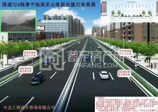 国道324线普宁池尾至云落段配套工程全长4.798公里,主线采用一级公路兼城市主干道标准,设计车速为80km/h。新增市政配套内容,在原24.5米基础上两侧拓宽为47.5米横断面,每边扩宽11.5米。包括新增市政雨水管、排污管、非机动车道、人行道及人行天桥等工程,工程预算总投资1.08亿元,其中建安费9933.8173万元。工程预计在2021年12月建成交付使用。