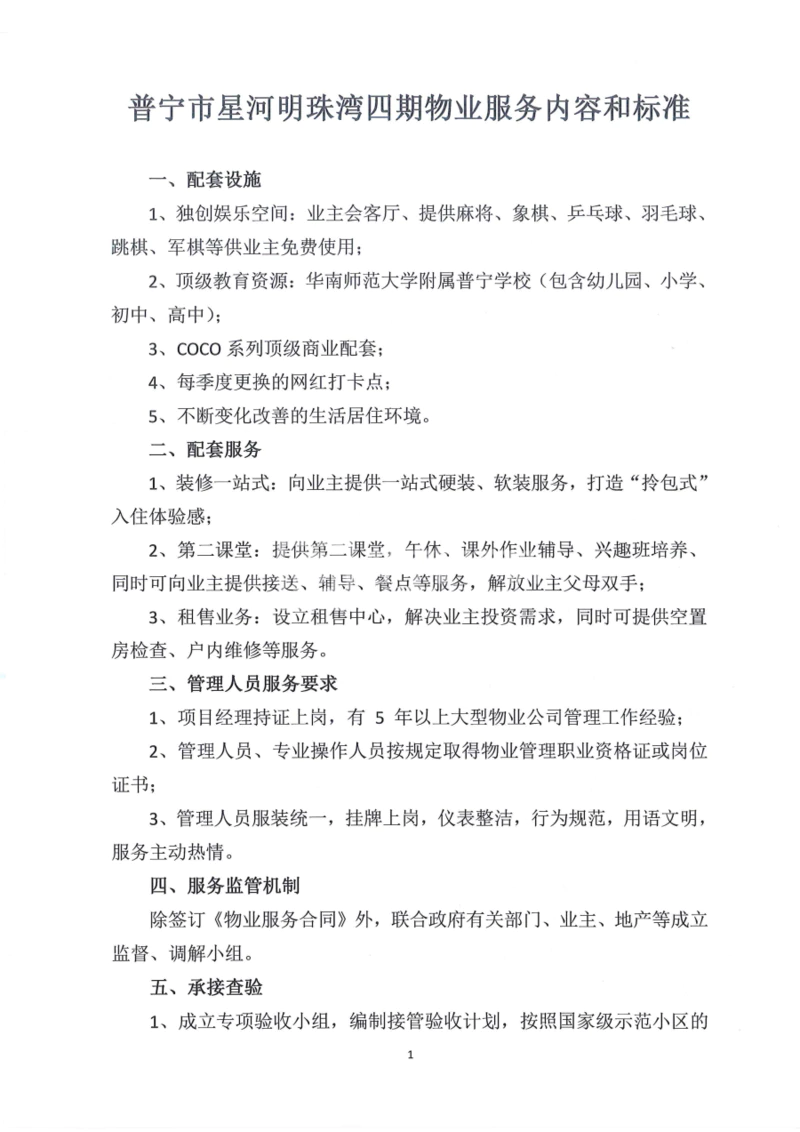 附件:普宁市星河明珠湾四期物业服务内容和标准。