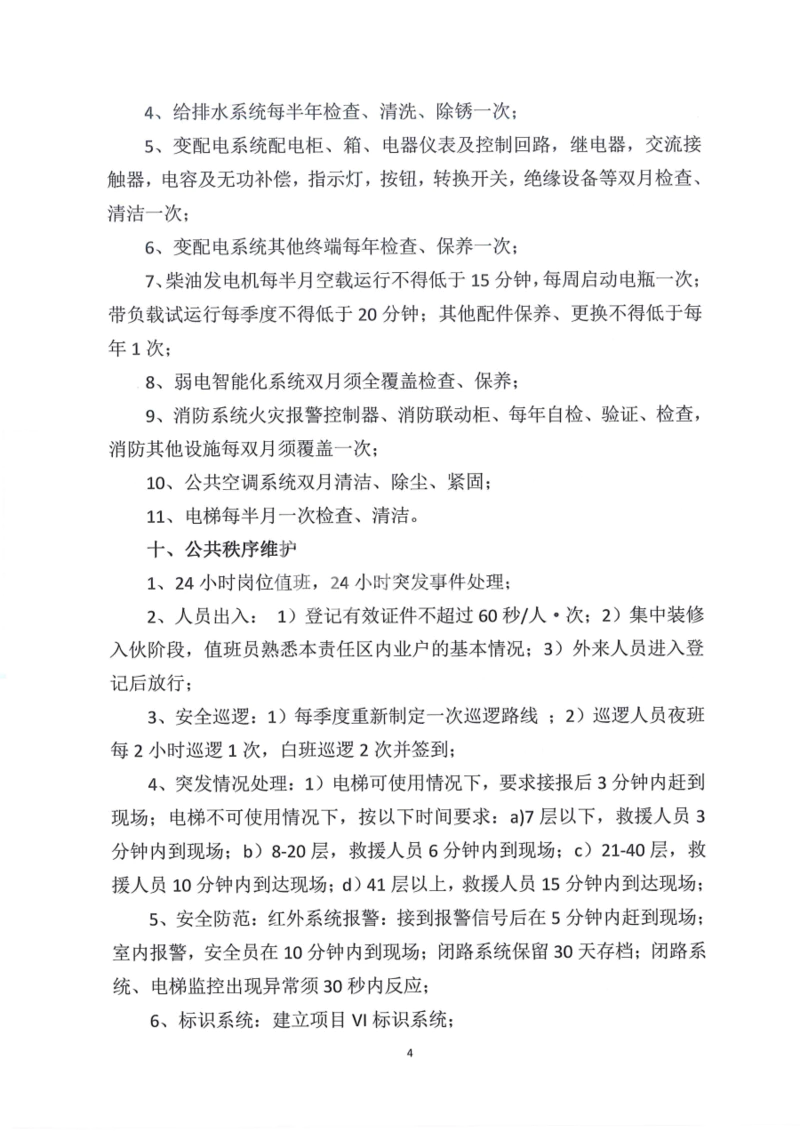四、你公司必须严格执行承诺的物业服务内容和标准,同时应在售楼处显著位置公示物业服务内容和标准(详见附件)、收费项目和收费标准。