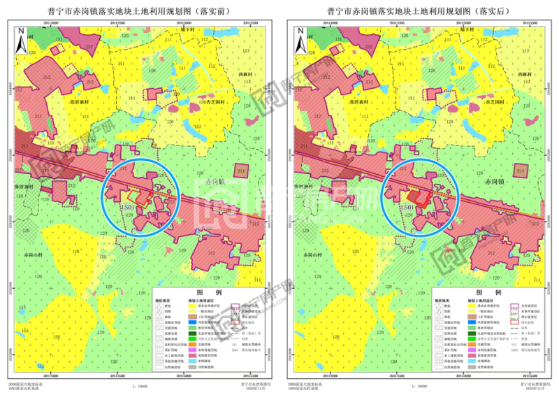关于《揭阳市普宁市预留城乡建设用地规模使用审批表(普宁市赤岗镇赤岗山学校校舍改建项目等2个项目)》成果的公告 一、预留城乡建设用地规模使用审批表编制原因 根据《广东省自然资源厅关于全力统筹推进疫情防控和经济社会发展加强自然资源保障服务的通知》(粤自然资发〔2020〕6号),广东省对各地级以上市分别预下达新一轮国土空间规划5000亩城乡建设用地规模,该预下达规模参照预留城乡建设用地规模使用,优先保障重要民生和脱贫攻坚项目。根据揭阳市自然资源局《关于进一步明确省预下达我市新一轮国土空间规划城乡建设用地规模使用有关事项的通知》(揭市自然资通〔2020〕78号)要求,本次预留规模保用于障近期具备建设条件、急需落位建设的项目,优先保障重要的各类民生、市政、交通等设施和重要产业项目,普宁市赤岗镇赤岗山学校校舍改建项目和普宁市医疗废弃物无害化处理中心2个项目属于近期具备建设条件、急需落位建设的民生类基础设施项目,符合预留城乡建设用地规模使用条件。根据有关文件规定,我局按相关要求组织编制了《揭阳市普宁市预留城乡建设用地规模使用审批表(普宁市赤岗镇赤岗山学校校舍改建项目等2个项目)》(以下简称《审批表》)。 二、土地利用总体规划主要土地调控指标变化情况 《审批表》落实地块总面积1.5642公顷,落实前,落实地块土地利用规划地类均为农用地,其中耕地0.0493公顷,园地0.9762公顷,林地0.5387公顷。落实后,落实地块全部调整为规划城乡建设用地。 根据现行规划,普宁市目标年(2020年)各项主要调控指标为:耕地保有量不低于21837公顷,基本农田保护面积不低于18532公顷,建设用地总规模控制在17963公顷以内,城乡建设用地规模控制在13838公顷以内。落实后,普宁市的耕地保有量、永久基本农田保护面积保持不变,建设用地总规模和城乡建设用地规模均增加1.5642公顷。 三、规划图件 《审批表》涉及落实地块落实前后土地利用总体规划图(局部图)。 四、批准机关和批准时间 《审批表》已于2020年11月27日通过揭阳市自然资源局审批(4452002020JY024)。根据相关法律、法规要求,现将《审批表》成果向社会公告。
