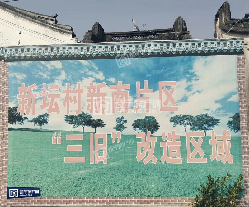 拆迁未动,宣传先行。走进新坛新南片村,迎面就能看到“新坛村新南片区‘三旧’改造区域”这一张大海报,绕过这张海报,后面的房屋就是这次要改造的范围。