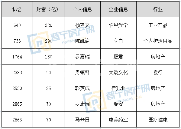 近期胡润研究院发布了2021年《胡润全球富豪榜》,小房君统计了前10位籍贯为普宁的企业家,其中有6人身价超百亿元人民币,而来自星河控股的黄楚龙先生以580亿财富位列榜单第290名,成为普宁首富。