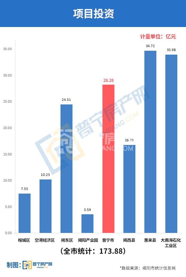 1-4月,揭阳全市项目投资173.88亿元,下降16.6%。其中,惠来县以34.72亿元位居第一,大南海石化工业区以33.98亿元位居第二,普宁市以28.28亿元位居第三。