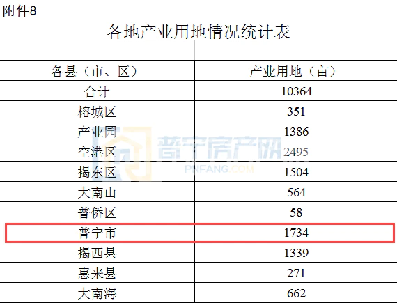 5.产业用地10364亩(详见附件8)。各地要满足产业升级需要,推动产业集聚发展,优先保障玩具、鞋业、不锈钢制品、化工、医药、快递物流等产业用地需求。