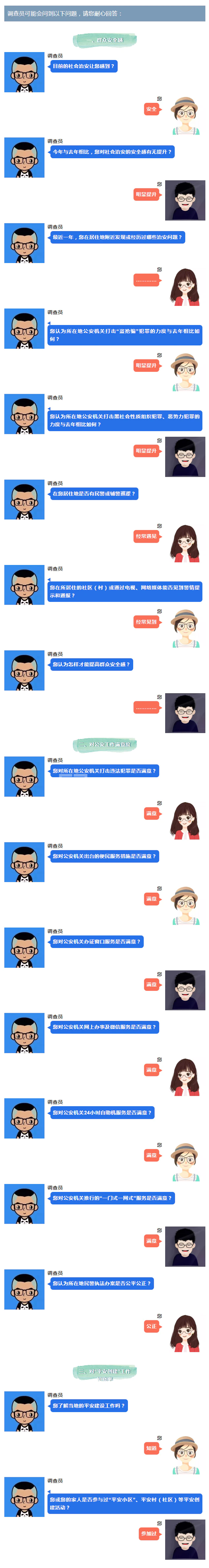此次调查测评主要目的是了解我市群众安全感和对公安工作满意度,以及对我市平安创建工作的知晓率,以利于我们改进平安建设工作。