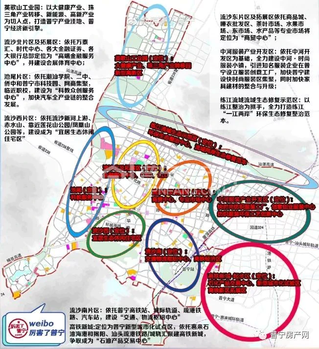 流沙南片区:依托普宁高铁站、城际轨道、疏港铁路、汽车站,建设"交通、物流枢纽中心"。