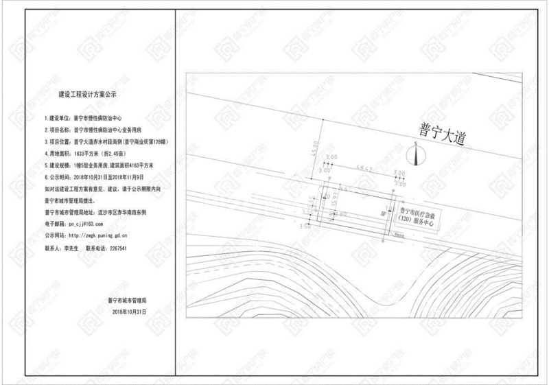 据了解,普宁市慢性病防治中心新址位于普宁大道赤水村段南侧(普宁商业街第128幢),用地面积为1633平方米(折2.45亩)。其建设规模为1幢5层业务用房,建筑面积4163平方米。