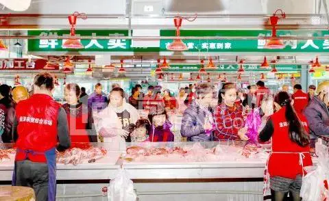 走进里湖农贸综合市场,只见大门最醒目位置设置有公告栏,显示当天市场里蔬菜超市的菜价;在肉类档位,这里的销售员都统一穿上了红色的服装。