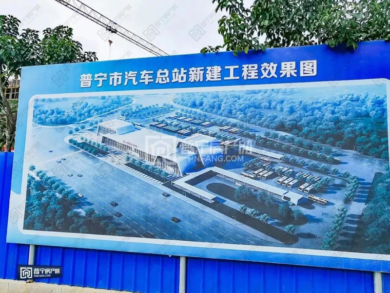 普宁市新汽车总站建设项目占地面积约68.1亩(其中车站占地面积55亩,道路占地面积13.1亩),总建筑面积10238平方米,主要建筑内容包括四层客运站主房7892 平方米,换乘连廊1268 平方米,单层检测、机修车间465 平方米,地下室614 平方米。该项目于2018年3月29日开工,目前已完成主站房主体结构约70%,累计投资1958万元。