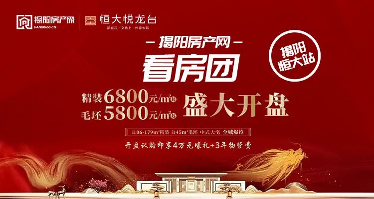 说到这里 相信很多人都应该想到了 这个楼盘就是 恒大集团入驻揭阳的第四个项目 揭阳恒大悦龙台 一个汇聚繁华商圈 拥有高级学府 更坐拥 超10万㎡江南风格生活园林 高端会所,一站式教育 恒大悦龙台正式开启认筹以来 一下子将揭阳的热度吸引到了 榕江新城文化广场南侧这个风水宝地 每天,这里都在上演疯狂抢筹的传奇 揭阳恒大悦龙台是恒大在粤东区域 打造的首座新中式项目 建面约106-179㎡的面积段 在众多开发商“限价”的条件下 恒大仍然不惜血本 砸下巨资打造了 超过10万㎡的新中式园林 以及超过2500㎡的高端会所 则采用了古代传统的五进礼制 让悦龙台的业主每一次归家 都能感受到最大的尊崇礼遇 这个项目能脱颖而出 品质自然可靠 其它具体信息就不一一赘述了 毕竟眼见为实 大家还是亲自到场感受一下才好 即将盛大开盘 主力户型为106-179㎡ 价格给力 精装6800元/㎡起 毛坯5800元/㎡起 开盘认购更享4万壕礼+3年物管费 值得期待 如果你有兴趣 可以点击下面小程序 报名参加看房团活动 购房前请先添加小房君微信 获取更多惊喜哦!