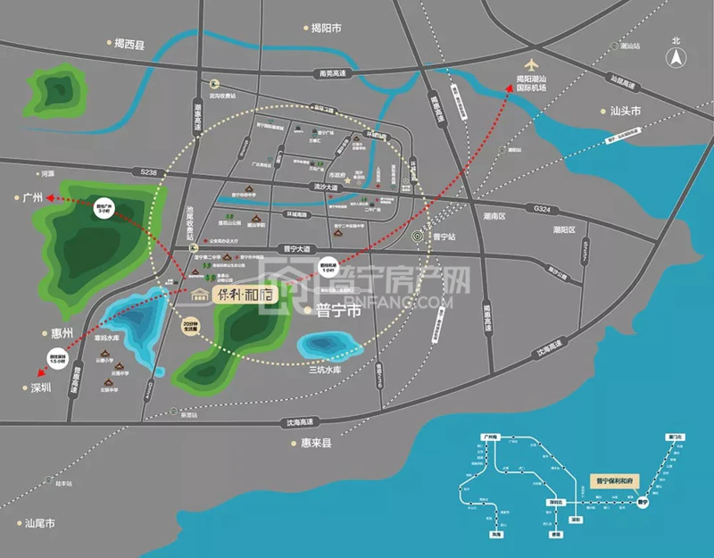 登顶而小天下,俯瞰而拾朝华。普宁保利和府占据城市价值高点,以多维立体交通及普宁二中、普宁市中医院、普宁市公安局办证服务大厅等教育、医疗、行政配套与南方梅园(楼盘详情户型图相册地图)、莲花山公园等丰富的绿色生态资源,绘就普宁城市新名片。