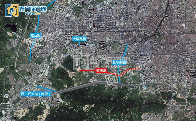 城市西南片的断头路是目前最少的,除了对接普宁市科技园的龙石路外,西二环大道南段也存在一小段对接普宁大道的道路;而赤华南路尚未建设,道路需贯穿赤水村,且覆盖旧区较多,也较影响村的相关片区的开发建设;