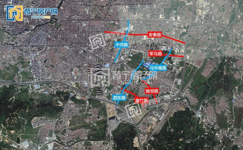普宁广场片区商贸活跃,有服装城、万泰汇、coco city、轻纺城等商业配套,因“开发红利”也导致道路通行相对稠密,周边断头路主要有南华路西边延长线、白沙陇路延长线(清华路)、大学路北段延长线(新春路)、赤华北路北段,这几条道路靠近新发展片区且周边旧区较多,开发难度十分巨大;