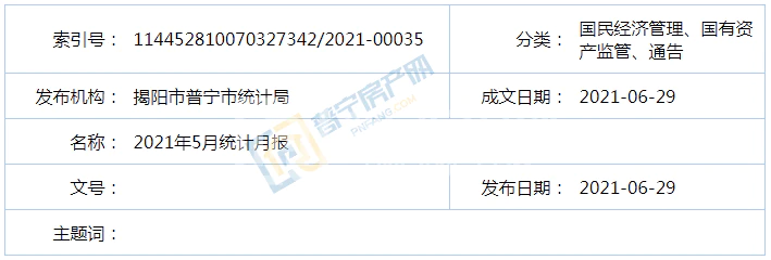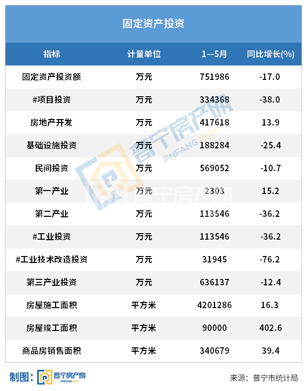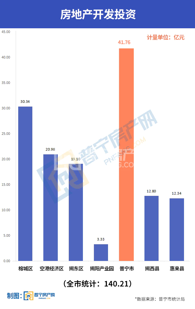 1-5月,揭阳全市房地产开发投资140.21亿元,增长7.0%,增速比1-4月提高17.8个百分点。其中,普宁市以41.76亿元位居第一,榕城区以30.34亿元位居第二,空港经济区以20.98亿元位居第三。