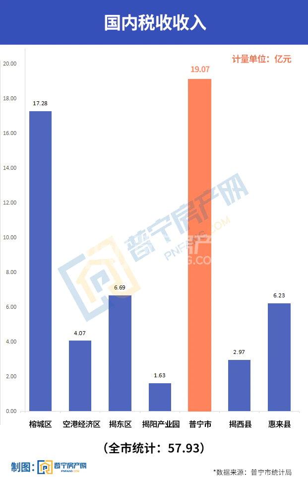 1-5月,国内税收收入57.93亿元,增长26.2%,增速比1-4月回落2.5个百分点,两年平均增长3.1%。其中,普宁市以19.07亿元位居第一,榕城区以17.28亿元位列第二,揭东区以6.69亿元位列第三。